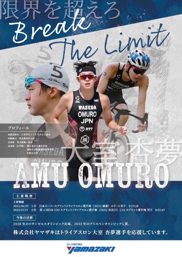 株式会社ヤマザキはトライアスロン大室杏夢選手を応援しています。